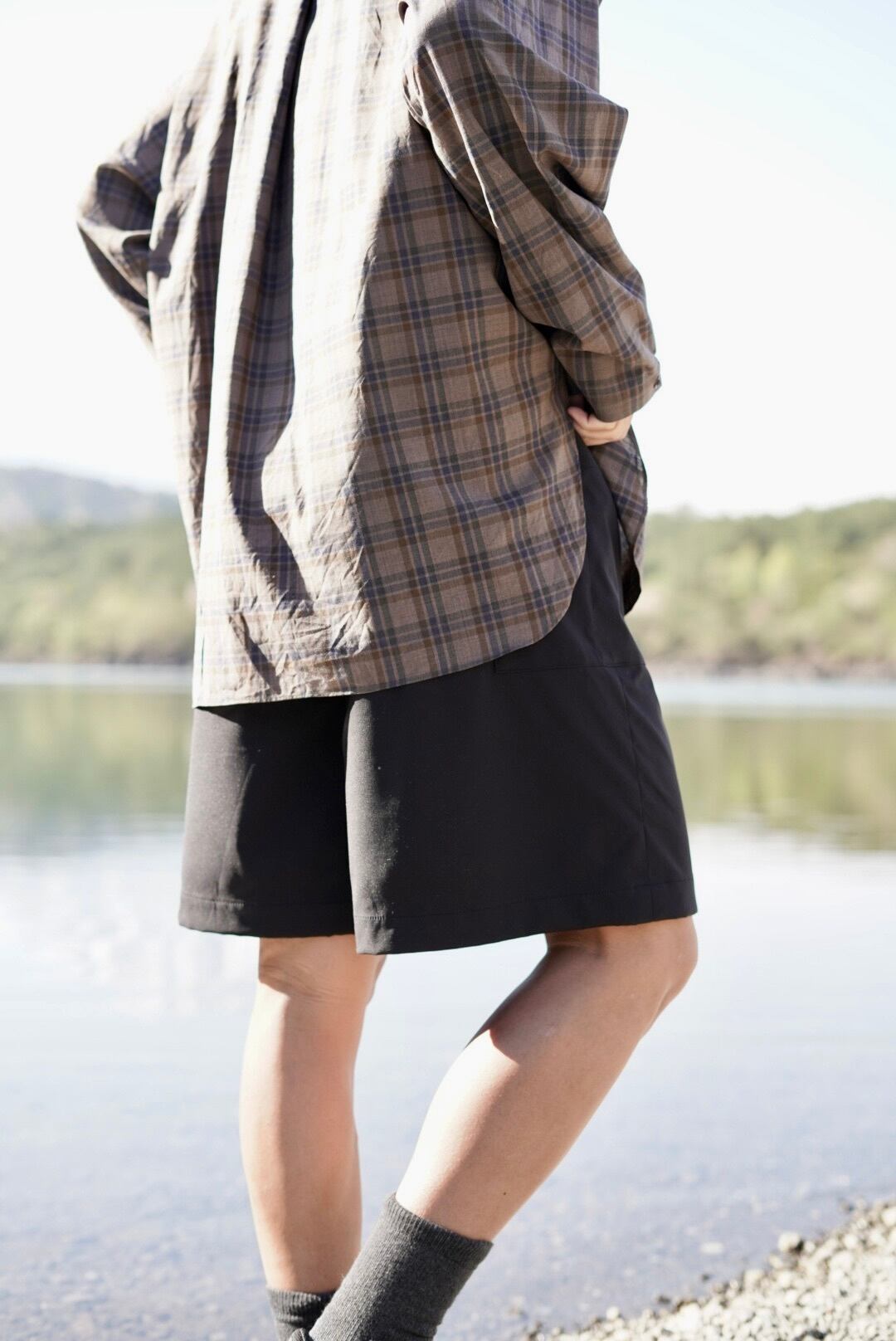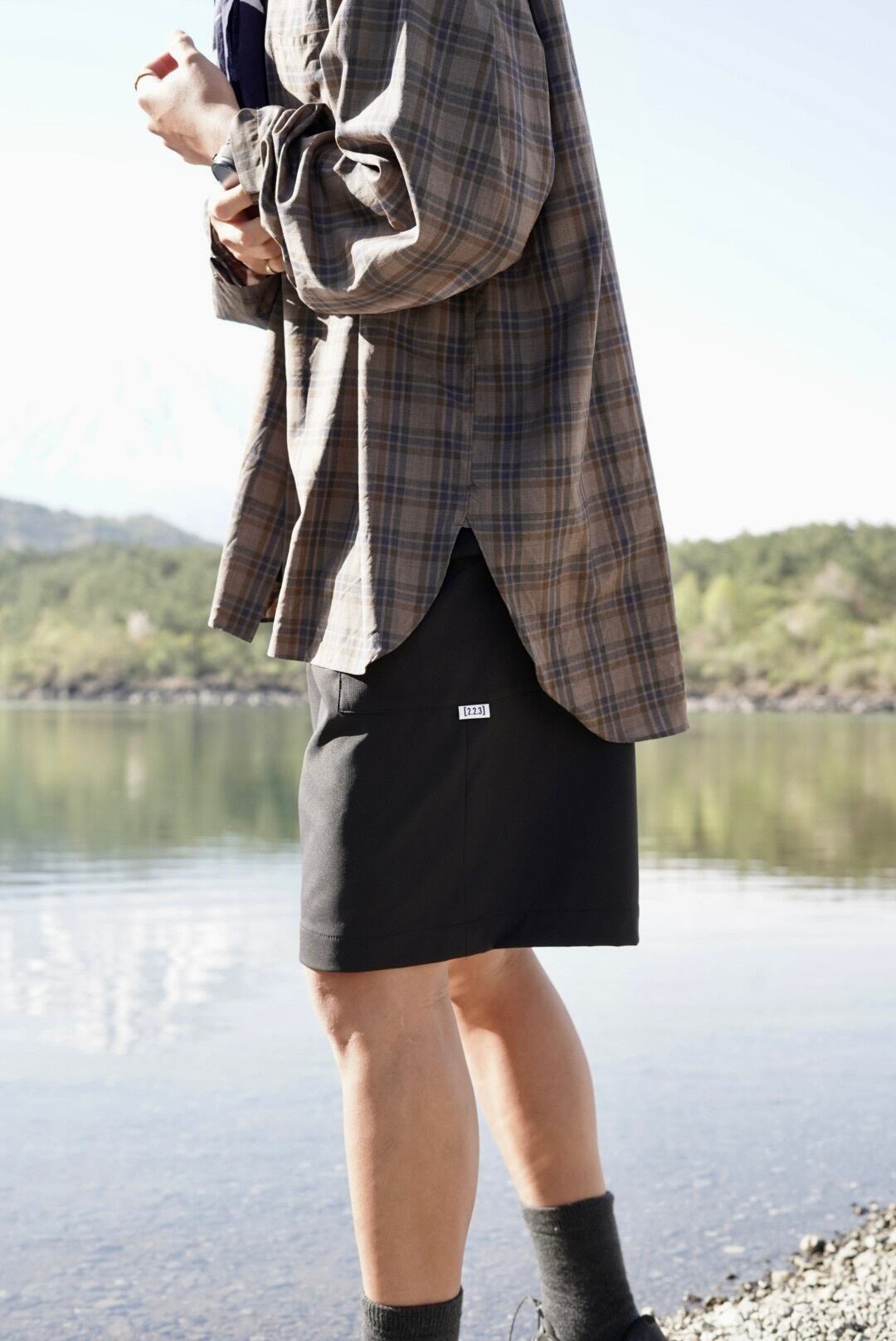 ストレスを感じないように若干フレアさせたワイドハーフ(膝にちょいかかるくらい)