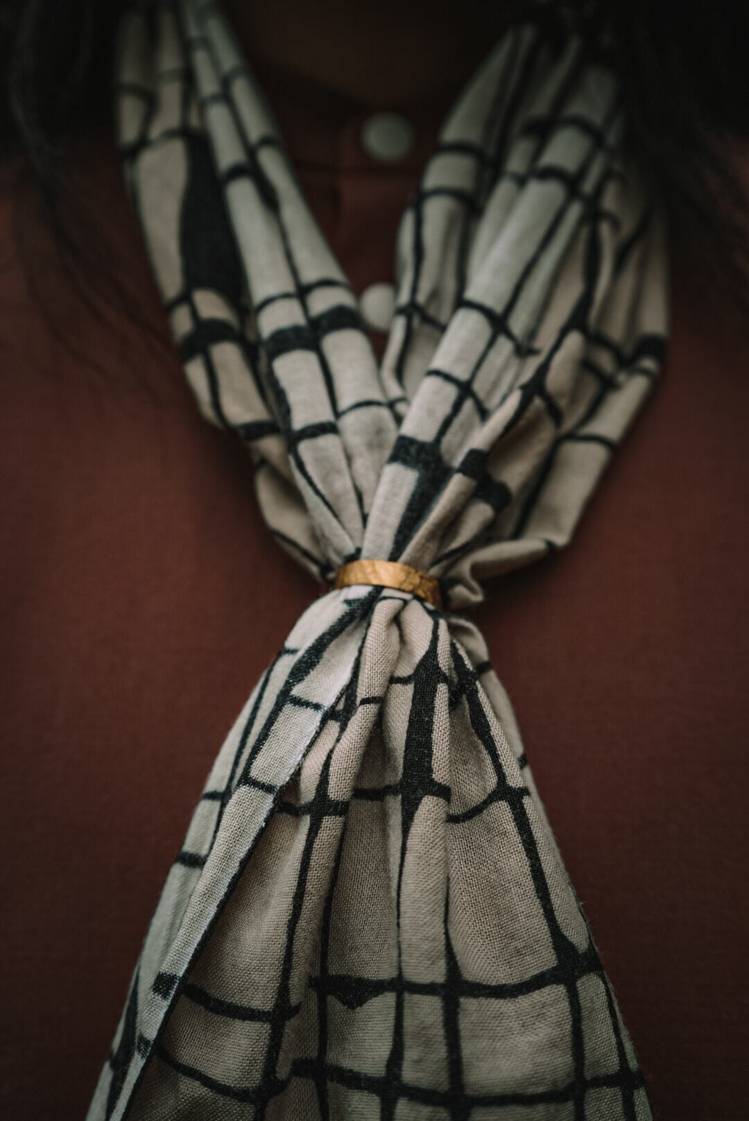手拭いを交差してリングに差し込むことで、